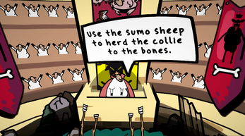 The Border Collie dog is running wild and it's up to you to herd it with the sumo sheep! Guide the dog to the bones and collect as many as possible, but watch out for the exploding tennis balls that keep catching the dog's attention!